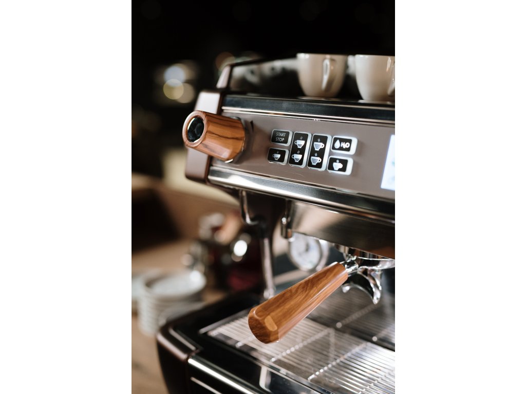 - Volitelně: olivové dřevo (portafiltery a knoflíky páry)