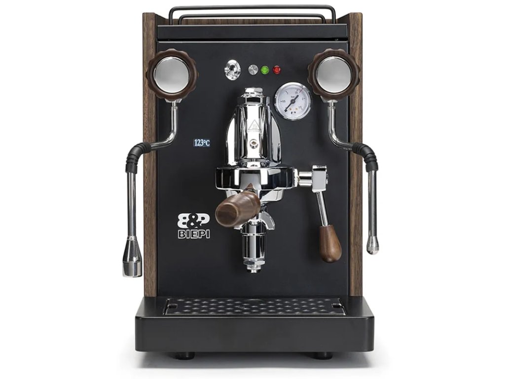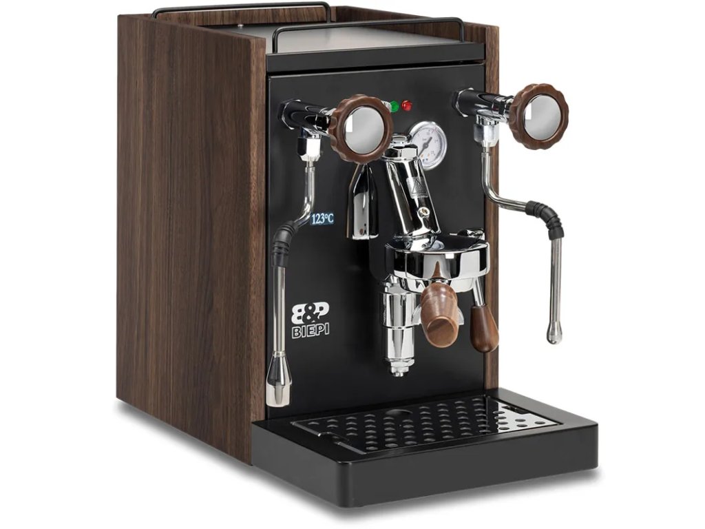BIEPI SARA je poloprofesionální pákový kávovar navržený a vyrobený v Itálii, ideální pro domácnosti a menší kavárny. S profesionální hlavou E61 a volitelnou PID regulací teploty nabízí precizní extrakci kávy, zatímco jeho elegantní černý design (Total Black) s dřevěnými doplňky (Walnut Wood) z něj činí stylový doplněk každé kuchyně.