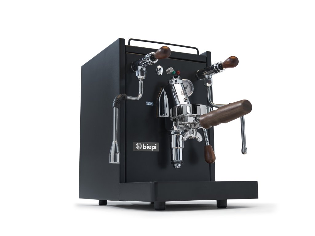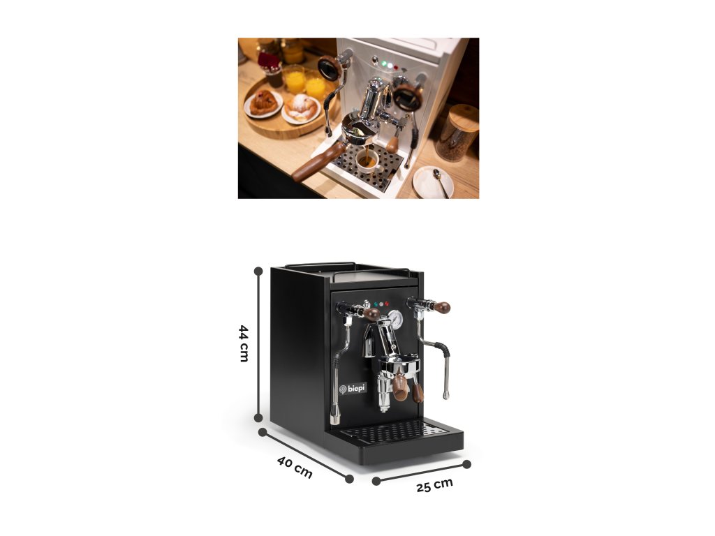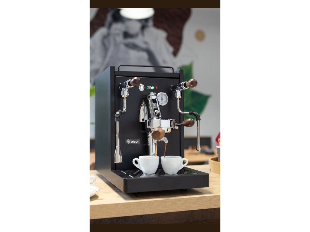 BIEPI SARA je poloprofesionální pákový kávovar navržený a vyrobený v Itálii, ideální pro domácnosti a menší kavárny. S profesionální hlavou E61 a volitelnou PID regulací teploty nabízí precizní extrakci kávy, zatímco jeho elegantní černý design (Total Black) z něj činí stylový doplněk každé kuchyně.