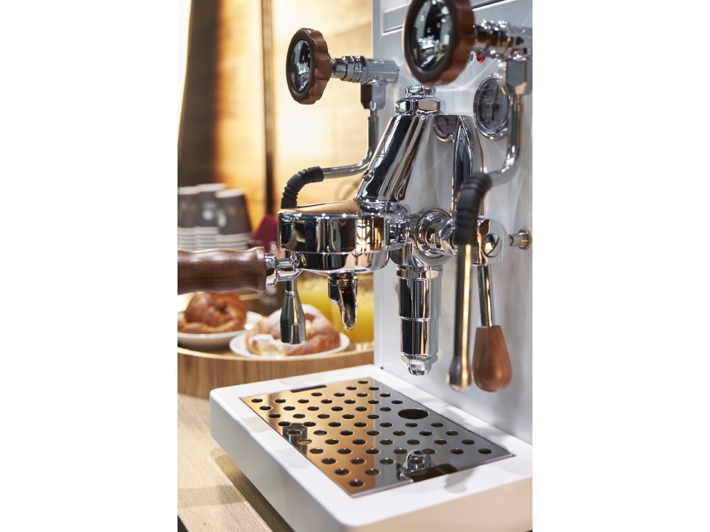 BIEPI SARA 1 Group Total White je poloprofesionální pákový kávovar ideální pro domácí baristy a menší kavárny. Nabízí profesionální hlavu E61 a volitelnou PID regulaci teploty pro precizní extrakci, měděný boiler o objemu 1,8 L a elegantní celonerezový design. Kompaktní rozměry a trysky na páru a horkou vodu z něj činí stylový a univerzální doplněk do každé kuchyně.