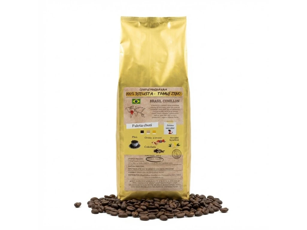 Brasil Conillon 100% Robusta čerstvě pražená zrnková káva alacaffé 500g | Česká pražírna