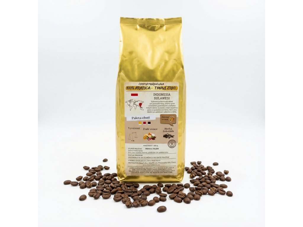 Indonesia Sulawesi 100% Arabika čerstvě pražená zrnková káva alacaffé 500g | Česká pražírna