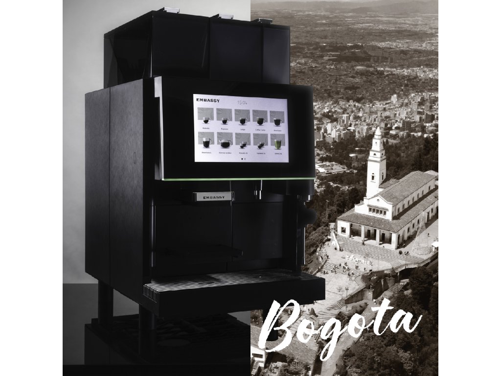Embassy Bogota je profesionální automatický kávovar pro přípravu 200 káv denně. Je vybaven připojením na vodovodní řád, čtyřlitrovou vodní nádržkou, ocelovým mlýnkem, a automatickým mléčným systémem pro tvorbu mikropěny o teplotě až 70 °C. Kávovar je kompatibilní s platebními systémy, jeho ovládání probíhá pomocí desetipalcového dotykového displeje, a jeho rozhraní je lokalizováno do českého jazyka.