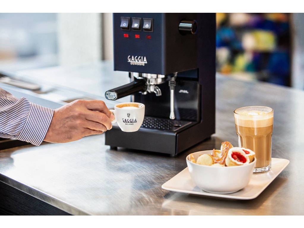 New Classic Evo představuje moderní revizi legendárního kávovaru Gaggia Classic, který již několik desítek let patří k nejoblíbenějším "pákám" na trhu s domácími kávovary. Jeho schránka, ohřevná plocha pro šálky, profesionální tryska a držák filtru jsou zhotoveny z nerezové oceli, výdejní páka a hlava potom z mosazi. New Classic Evo zvládá připravit dva šálky espressa současně a je vybaven zásobníkem vody s více než dvoulitrovým objemem.
