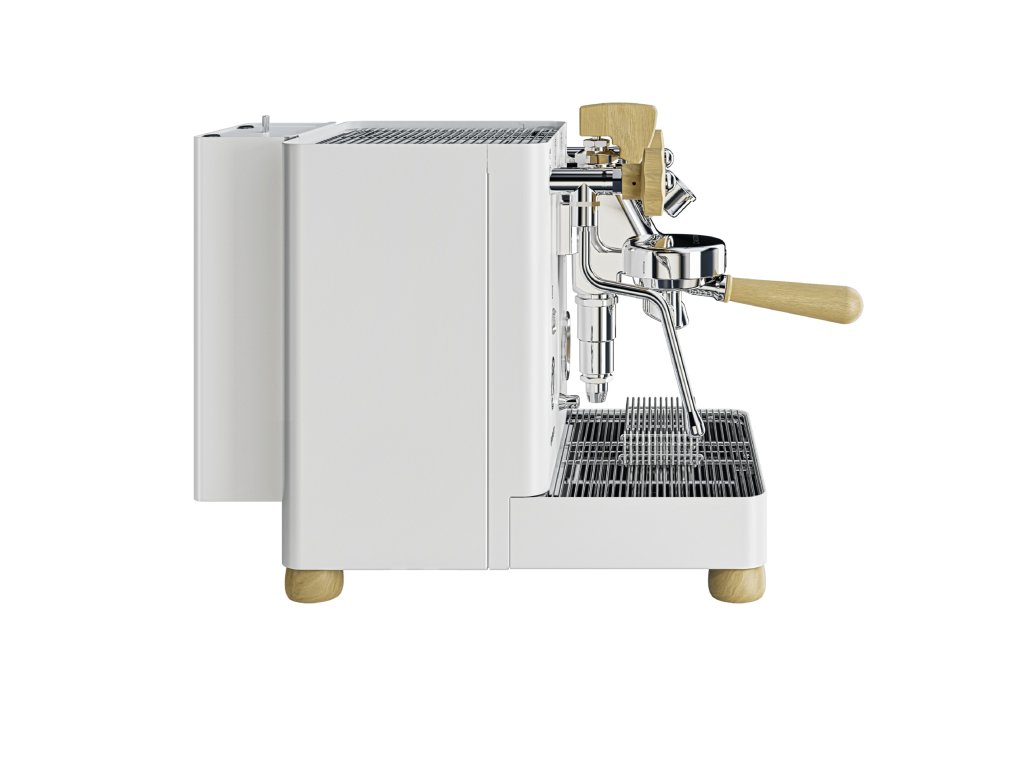Bianca PL162T je pákový kávovar zhotovený z leštěné nerezové oceli v doplnění páky a dvojice hlav standardu L58E z javorového dřeva. V jeho výbavě nechybí dvojíce na sobě nezávislých bojlerů s dedikovanými manometry, OLED displej, časovač, nahřívací plocha pro šálky ani praktické podsvícení tlačítek. Varianta v bílé barvě.