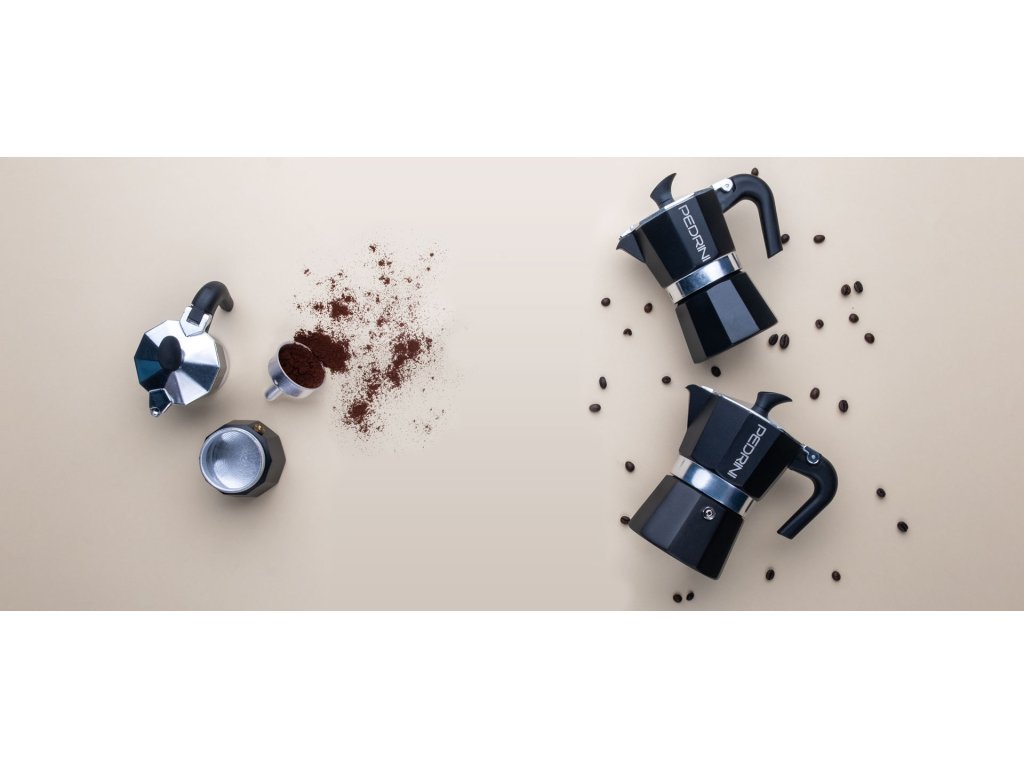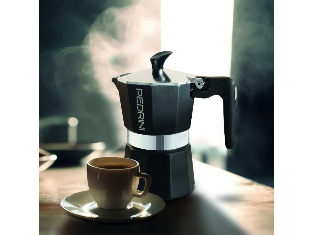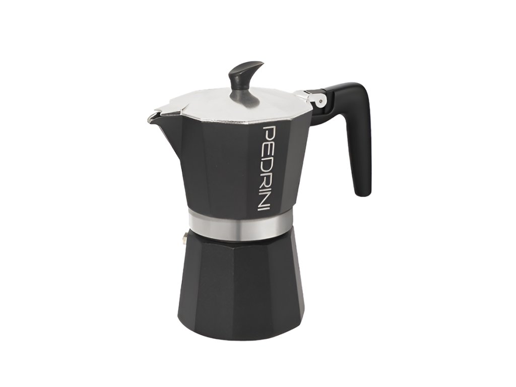 Celočerná hliníková moka konvička od italské značky Pedrini.