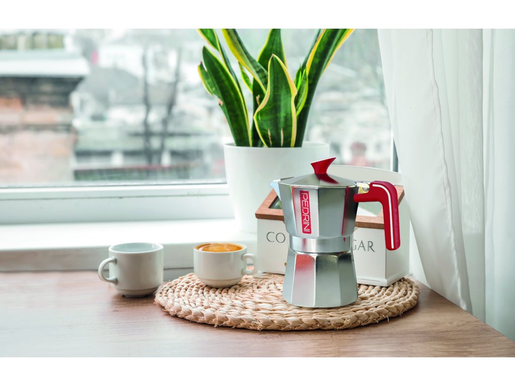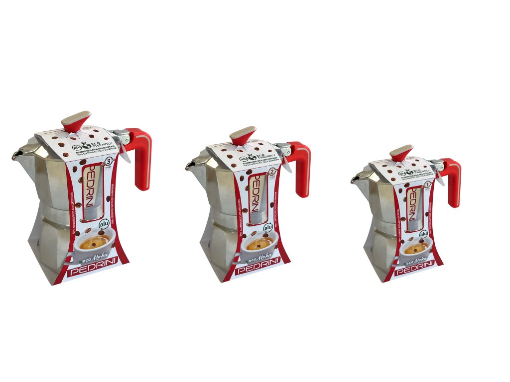 Hliníková moka konvička s prémiovým zpracováním rukojeti a víka. Konvička je vyrobena ze 100% recyklovatelného potravinářského hliníku.