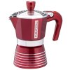 Designová moka konvička z potravinářského hliníku. Rukojeť konvičky je zhotovena ze speciálního termoplastu o přibližné tepelné odolnosti 210 °C. Konvička je natřena žáruvzdornou třpytivou glazurou a zdobí ji kruhové obrazce.