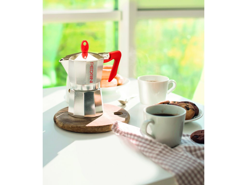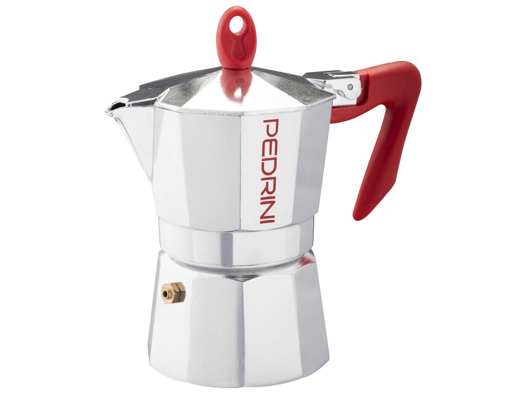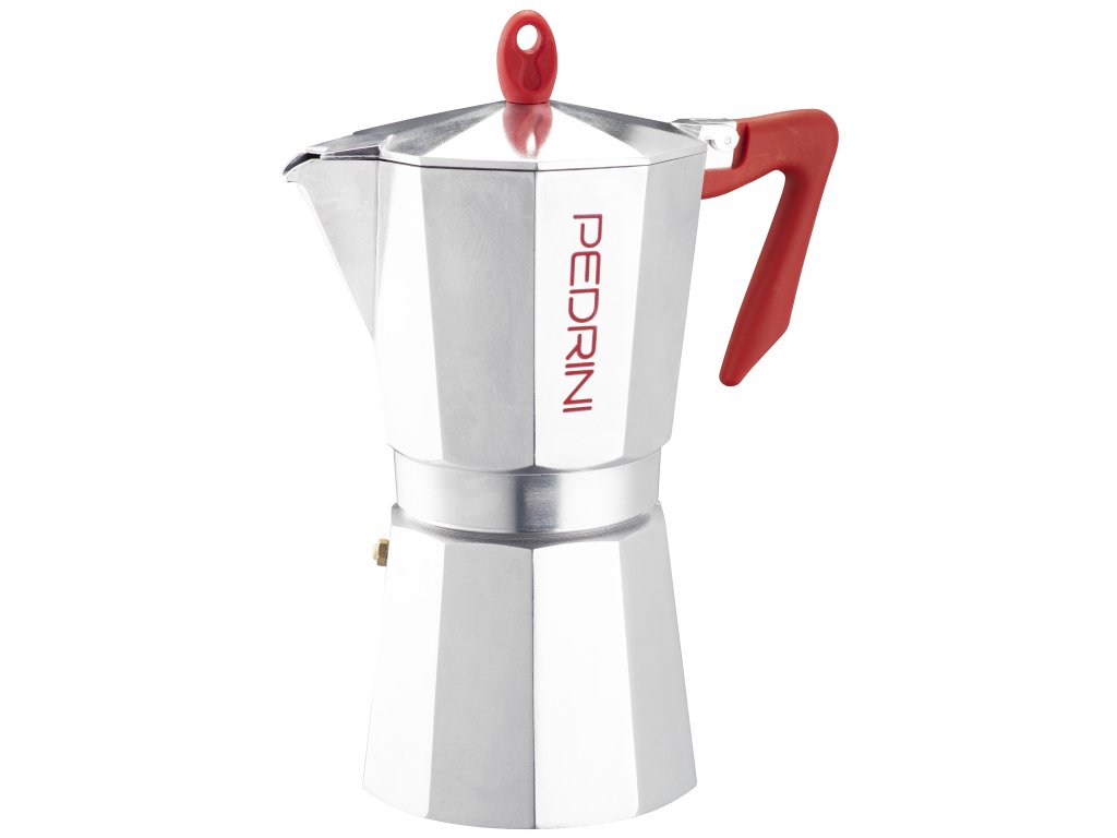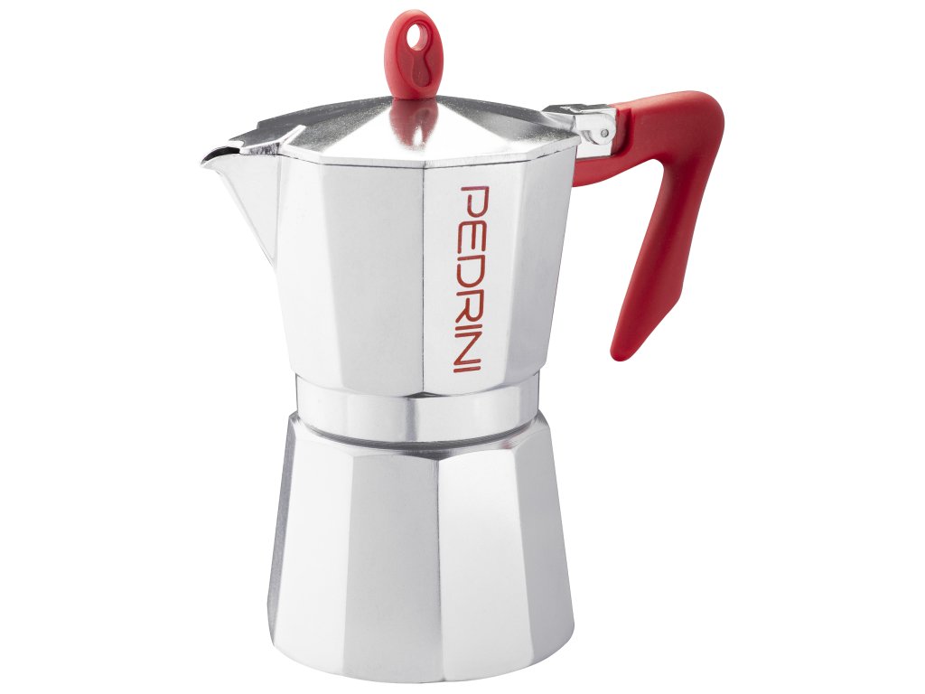 Pedrini Kaffettiera je nadčasová hliníková moka konvička vyráběná exkluzivně v Itálii. Její desetihranný tvar zajišťuje perfektní rozložení tepla při ohřevu, což přispívá k rovnoměrné extrakci kávy. Konvička je vyrobena z potravinářského hliníku EN601, který je nejen odolný, ale také umožňuje tvorbu jemné patiny. Ta se při pravidelném používání vytváří na vnitřním povrchu a postupem času obohacuje chuť každého šálku. Ergonomická žáruvzdorná rukojeť s tepelnou odolností až do 210 °C je navržena pro pohodlnou manipulaci a spolu s praktickým silikonovým těsněním zaručuje dokonalou těsnost při každém vaření. Bezpečnost zajišťuje 100% kontrolovaný bezpečnostní ventil, který eliminuje riziko přetlaku.