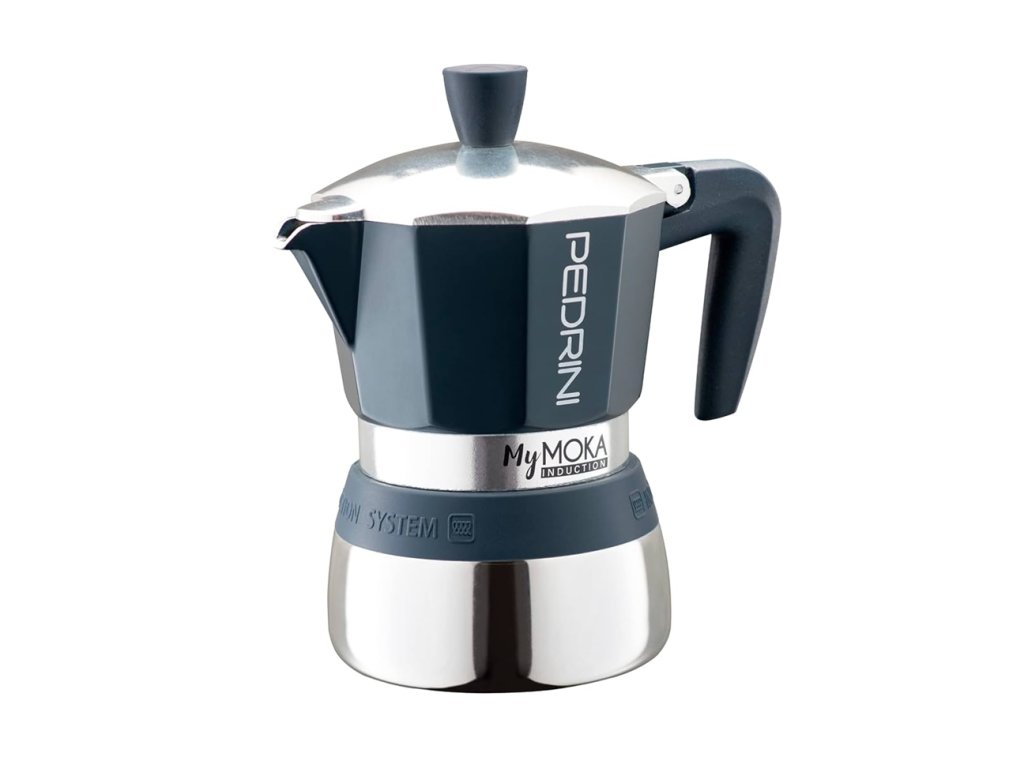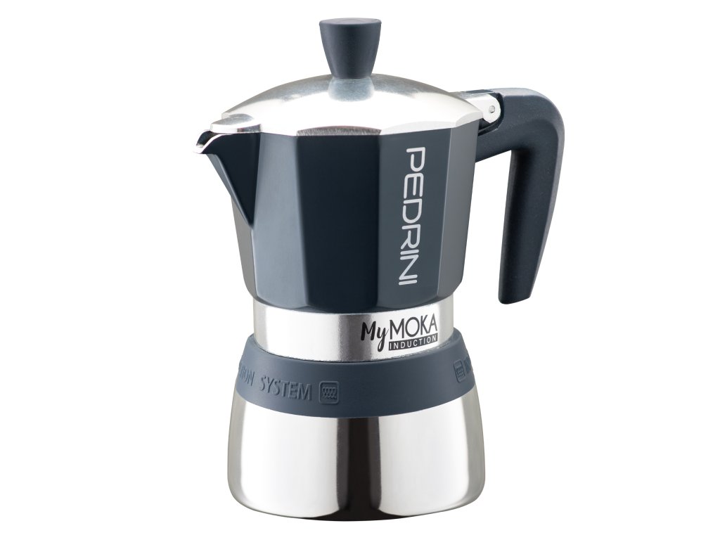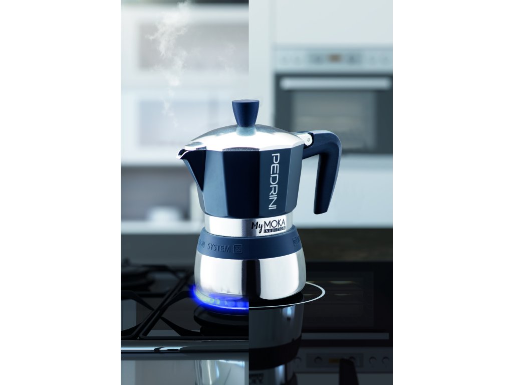 Pedrini MyMoka Indukce modrá je indukční moka konvička, která je kompatibilní se všemi způsoby ohřevu. Je vybavena dvouvrstvou spodní nádobou, kde vnější vrstva je z leštěné nerezové oceli INOX 18/10, která zajišťuje indukční kompatibilitu, a vnitřní vrstva je z potravinářského hliníku, který lépe sbírá patinu a neovlivňuje chuť připravované kávy. Patentované dvouvrstvé provedení zajišťuje optimální přípravu tradiční italské kávy i na indukci. K dispozici je bezpečnostní ventil a žáruvzdorná rukojeť pro maximální komfort a bezpečnost při používání.