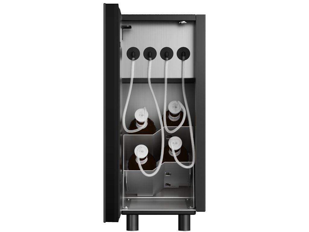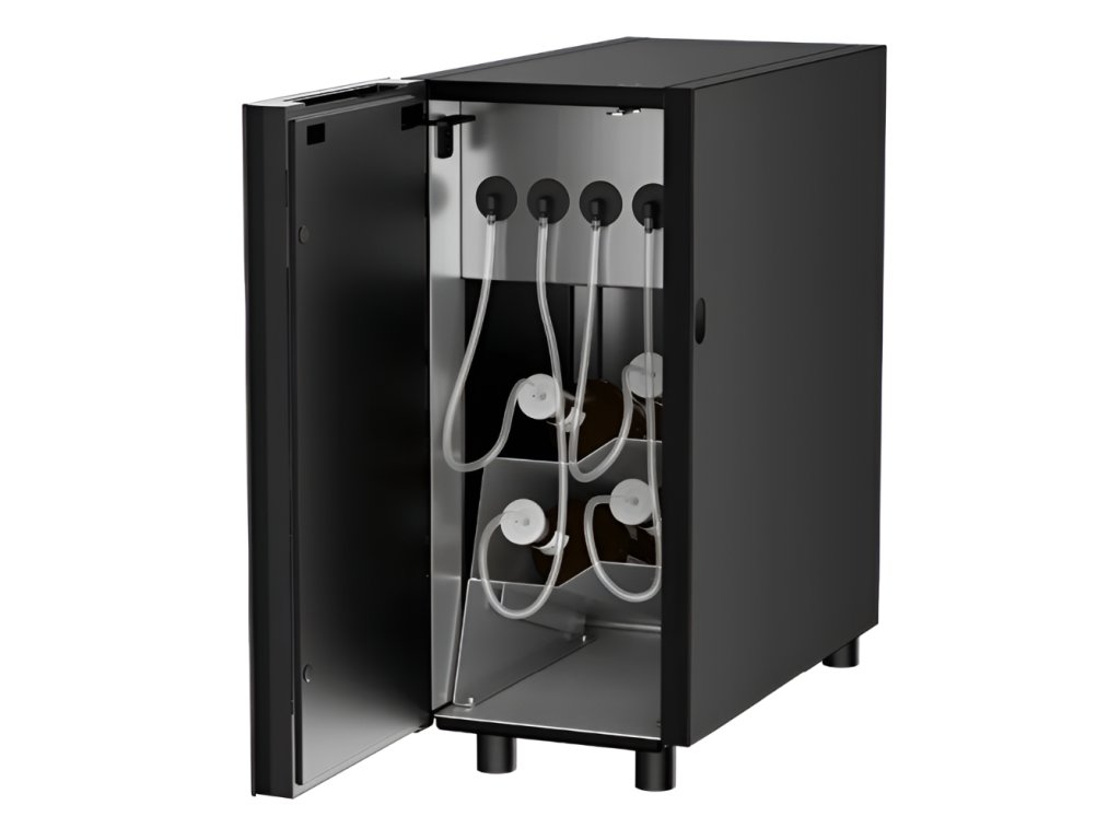 Profesionální kompresorová lednice pro čtyři druhy sirupu.